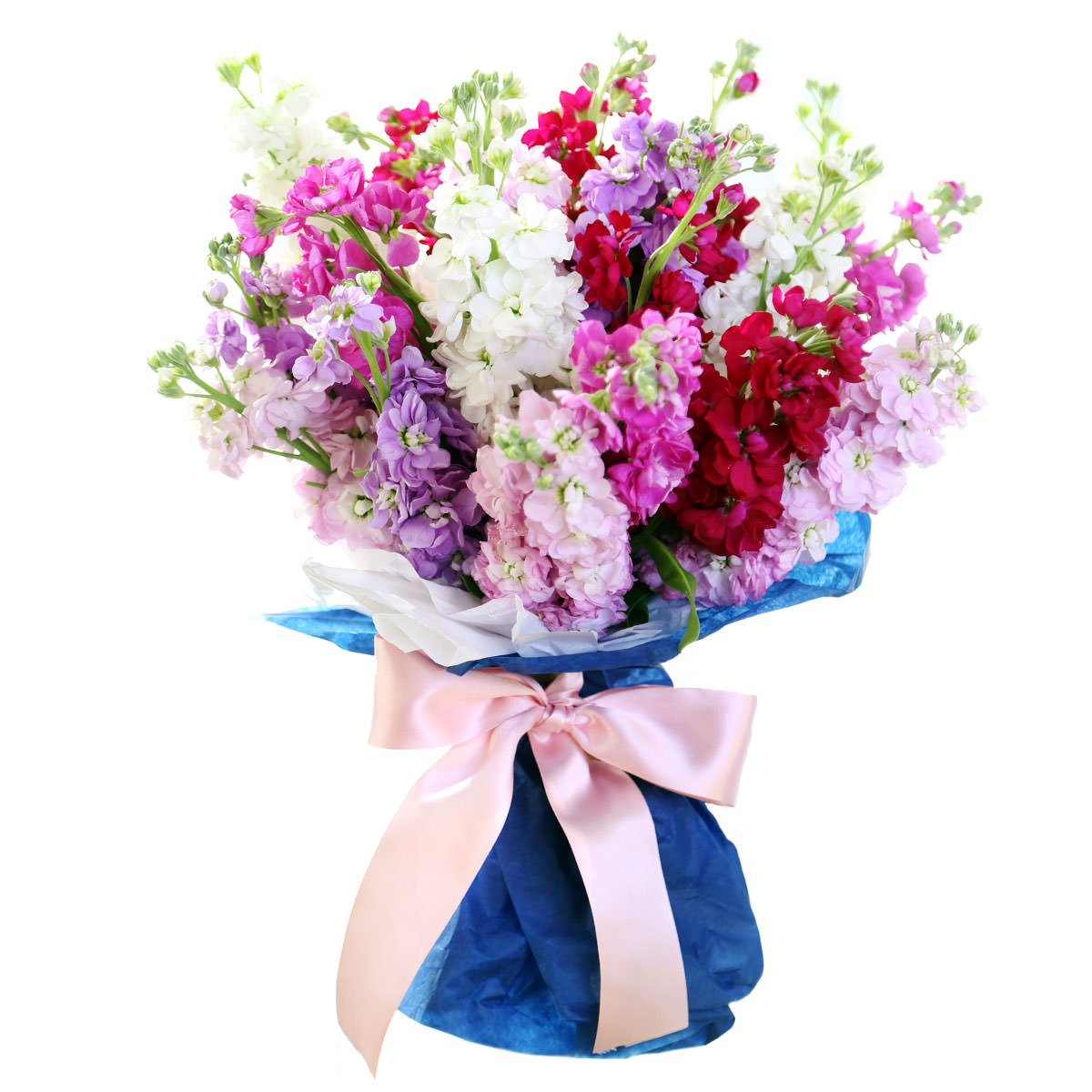 Маттиола розовая, белая, красная, фиолетовая. Упаковка (лента, пленка, крафт, сетка, пленка матовая)